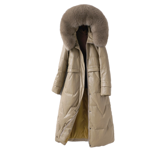 绵羊皮羽绒服女外套中长款 真皮衣 连帽狐狸毛领90白鸭绒海宁新款