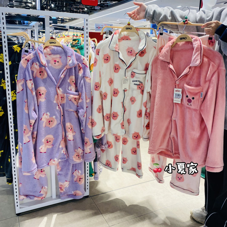 休闲家居服23秋冬新款 男女同款 卡通毛绒睡衣套装 韩国spao正品