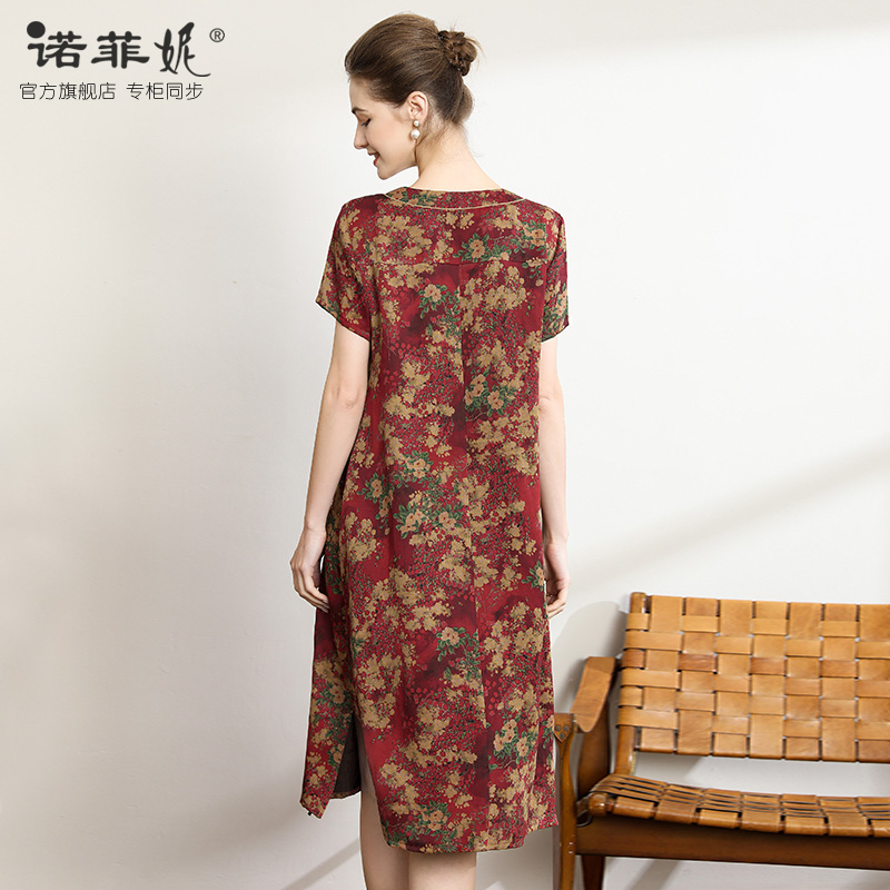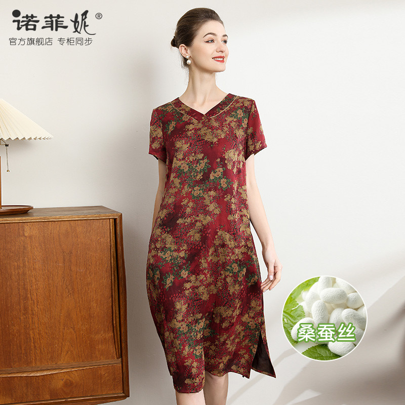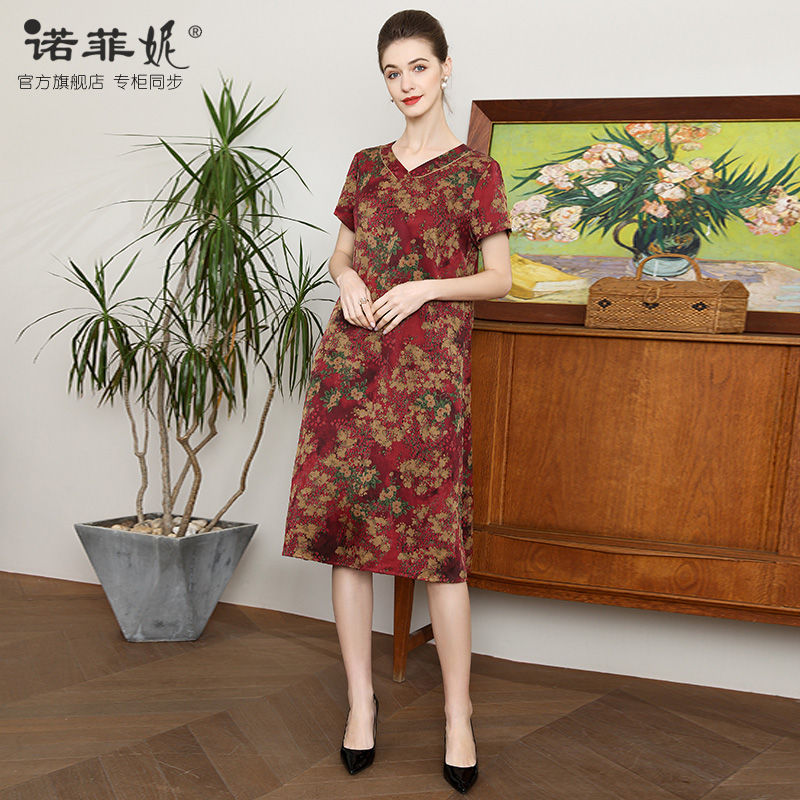 复古优雅正宗莨绸香云纱连衣裙真丝裙子 新款 中老年妈妈装 2025夏装