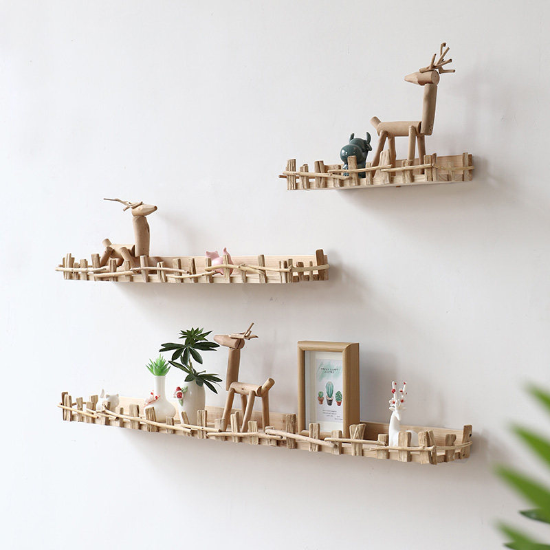 实木墙面装 饰架一字隔板免打孔北欧木质层板入户门收纳 饰置物架装