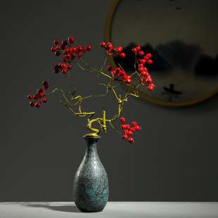 复古仿古田园风陶瓷小花瓶摆件客厅插花干花小众高级感创意装 饰品