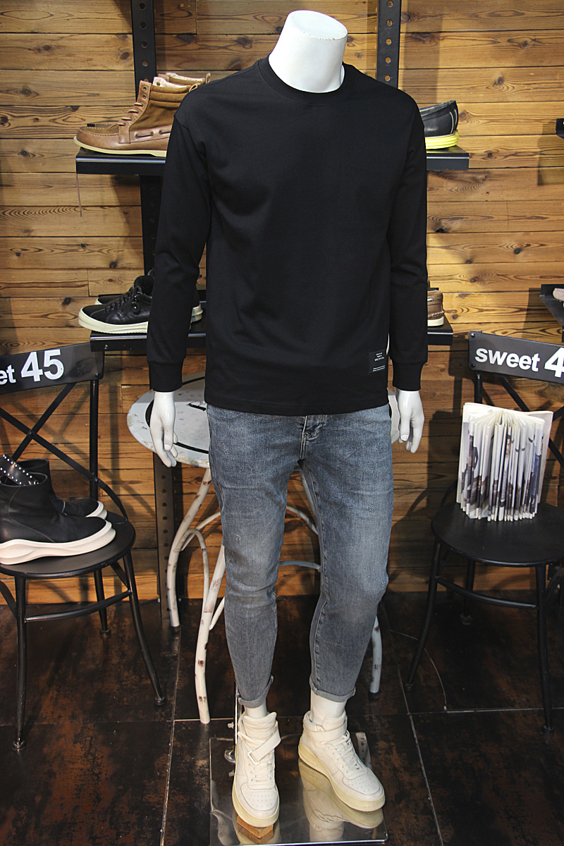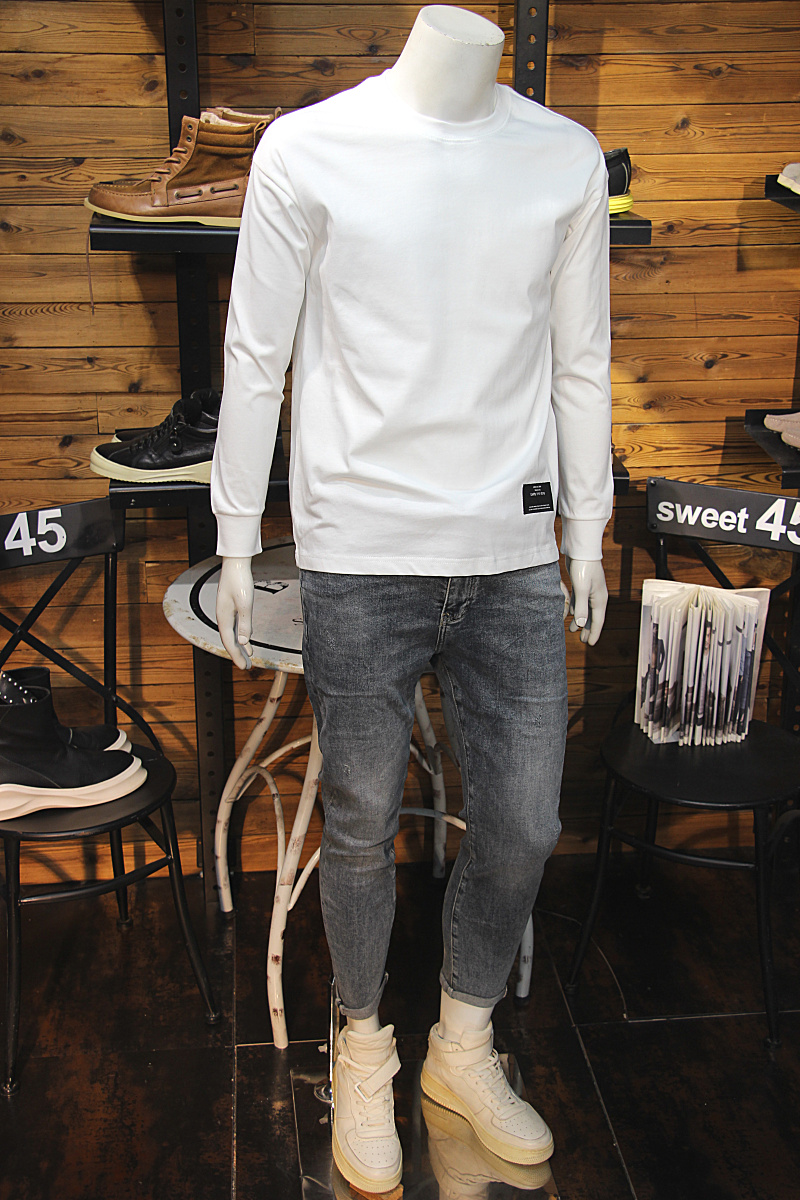 秋季 小衫 男长袖 圆领青年休闲纯棉舒适打底长袖 T恤修身 简约净版