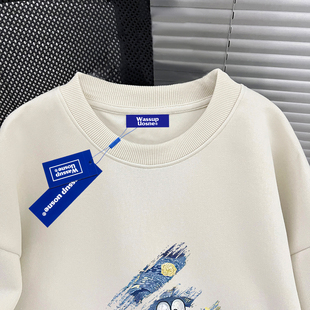 GUUKA&matsui联名小狗重磅圆领卫衣男款 纯棉情侣加绒落肩上衣宽松
