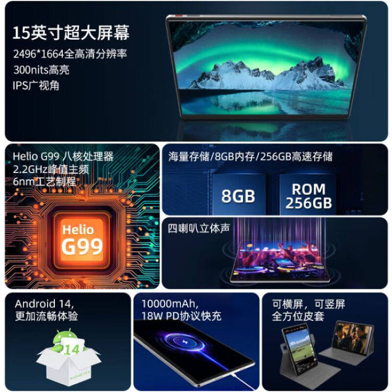 大学生学习专用掌上超薄15英寸大屏幕游戏pad分期付款 官方正品 中柏安卓平板电脑2025新款 上网 顺丰速发