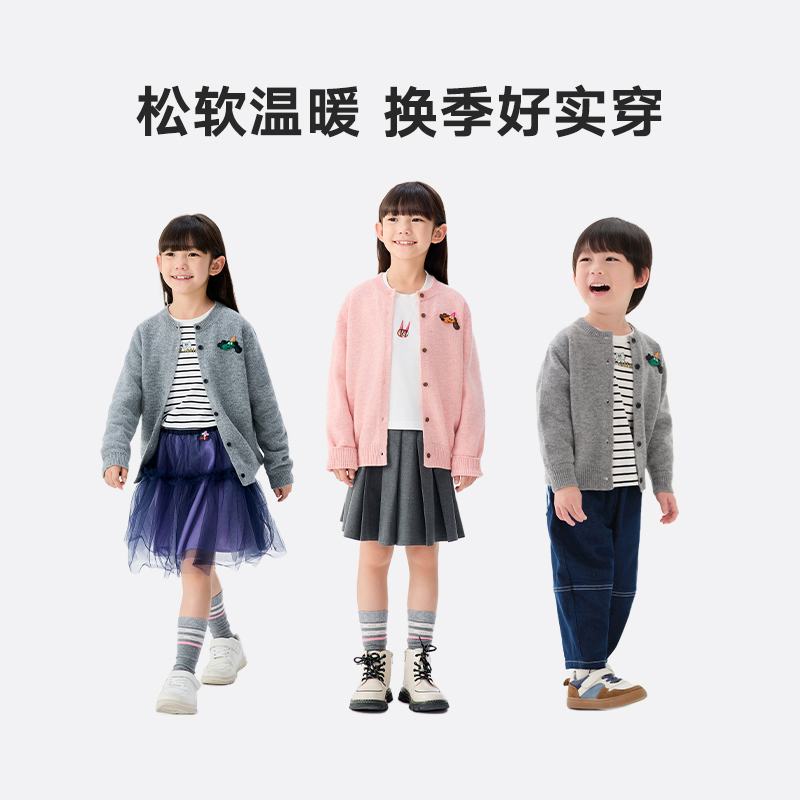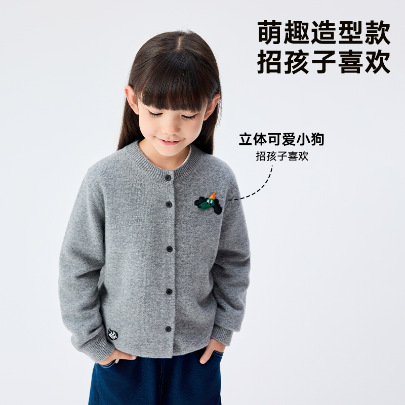 女童大童羊毛立体织标毛衣开衫 新款 儿童毛衣2024秋装 马拉丁童装
