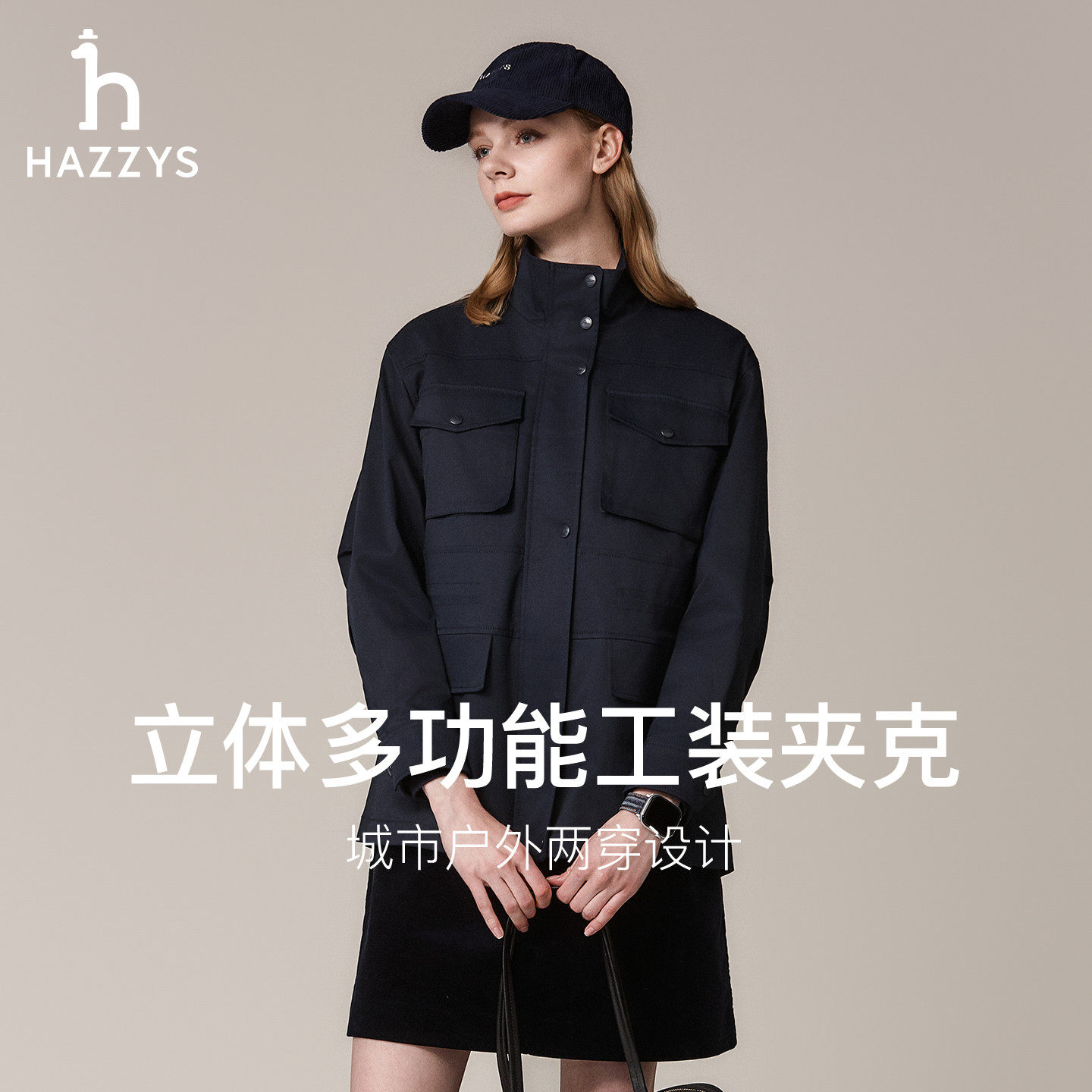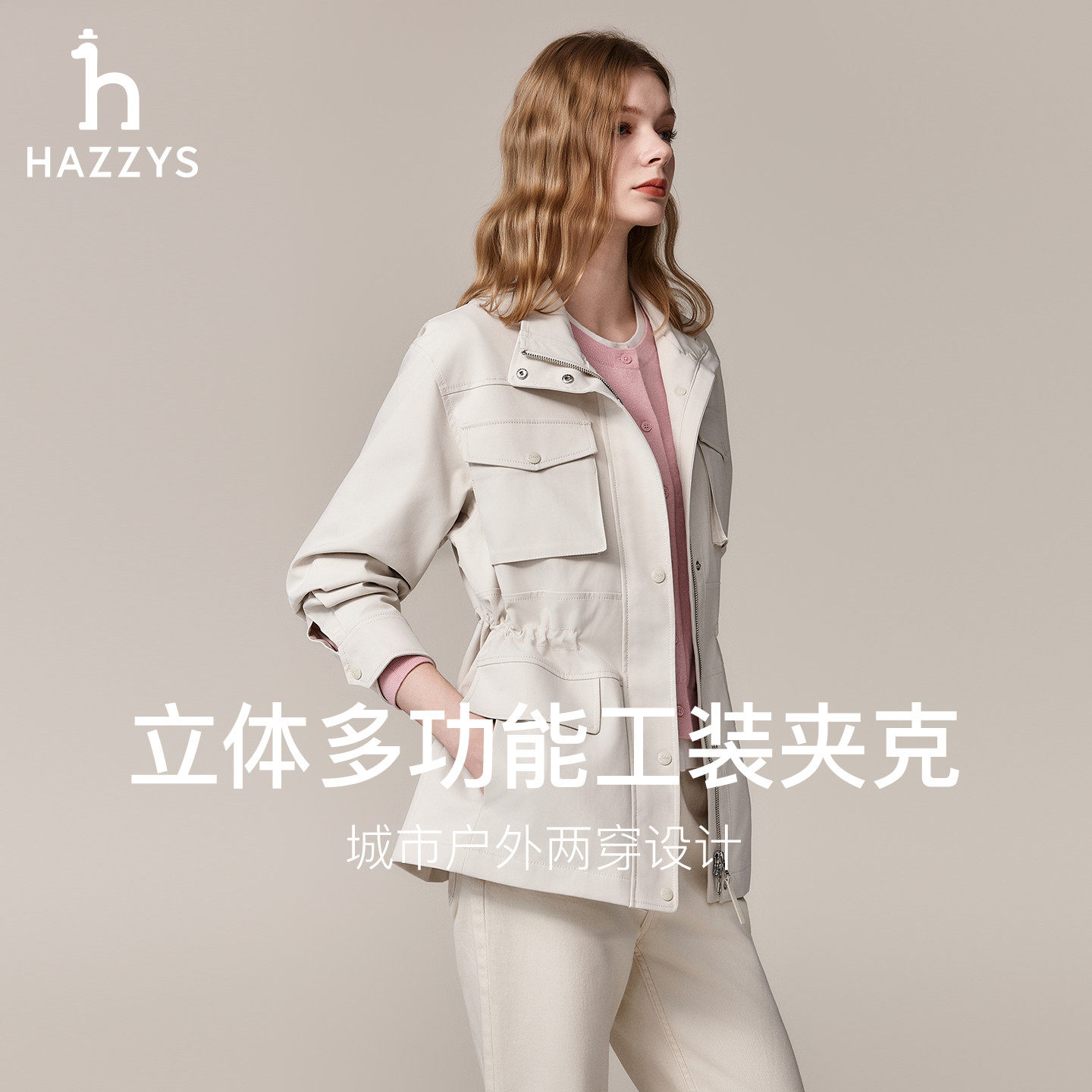 通勤休闲多口袋抽绳外套潮流 时尚 Hazzys哈吉斯宽松工装 夹克女秋季