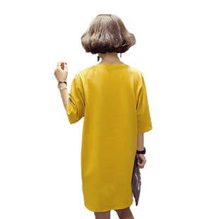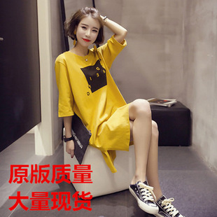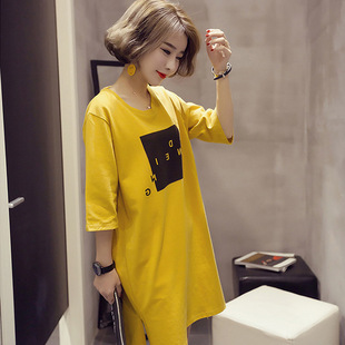 新款 开叉连衣裙女半袖 韩版 短袖 学生t恤女上衣 宽松中长款 2020夏装