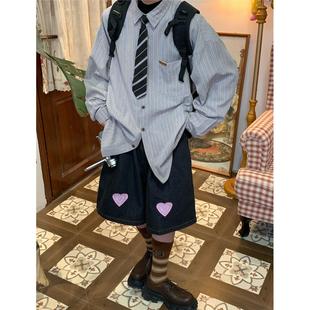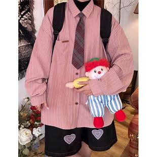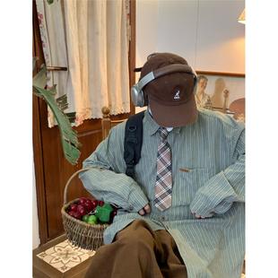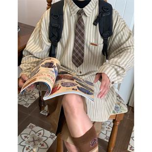 衬衫 C2自制 复古条纹长袖 美式 男女百搭宽松打底上衣领带 春秋新款