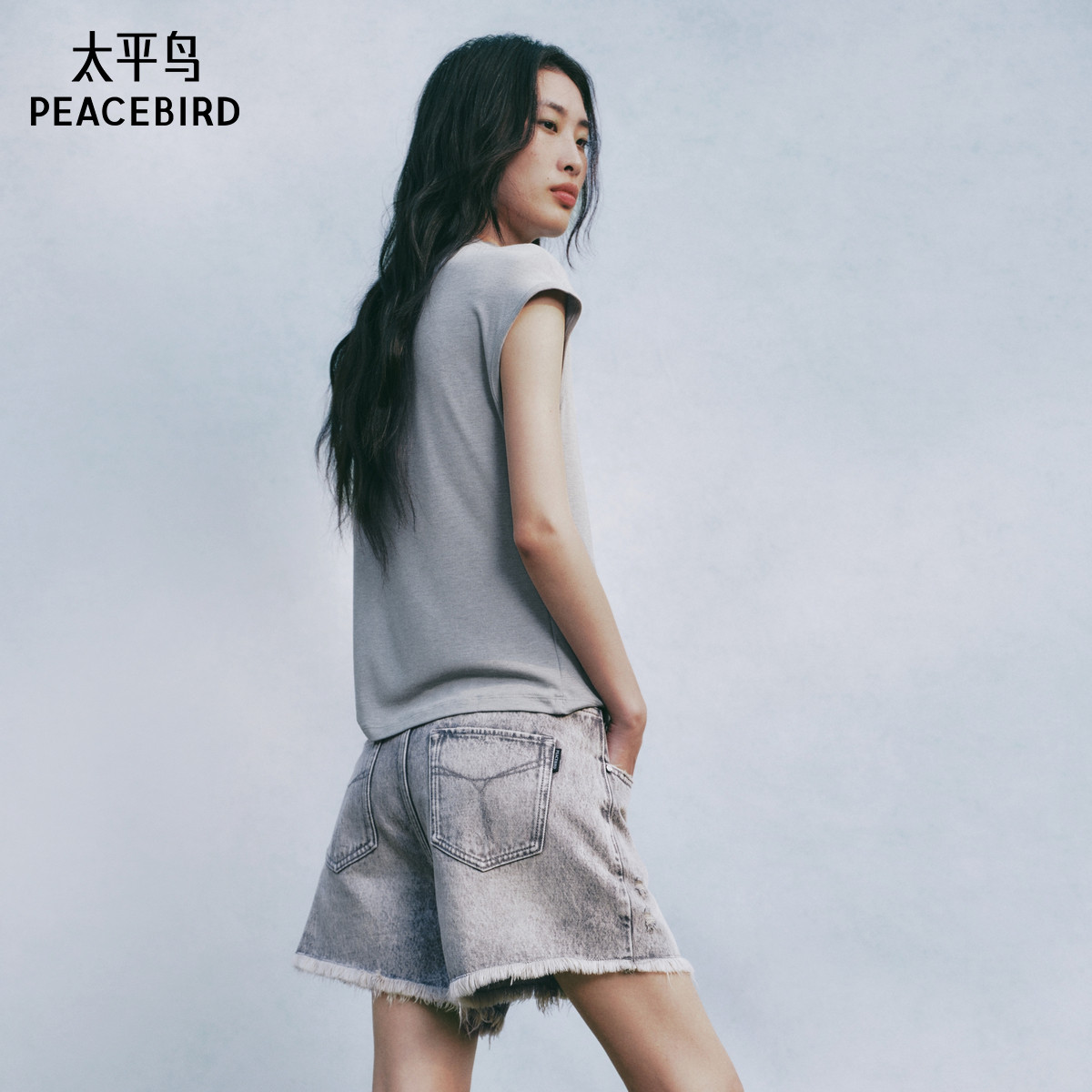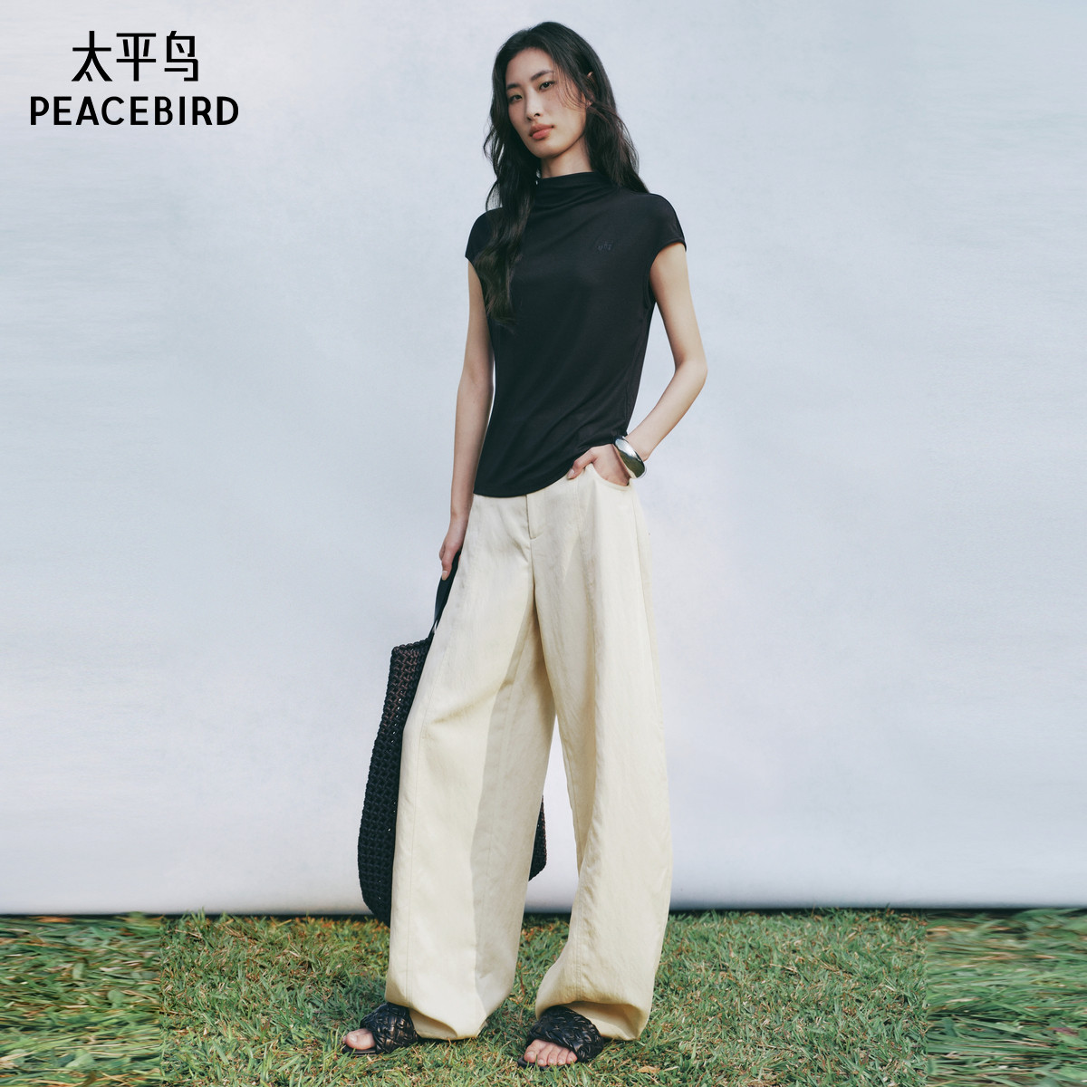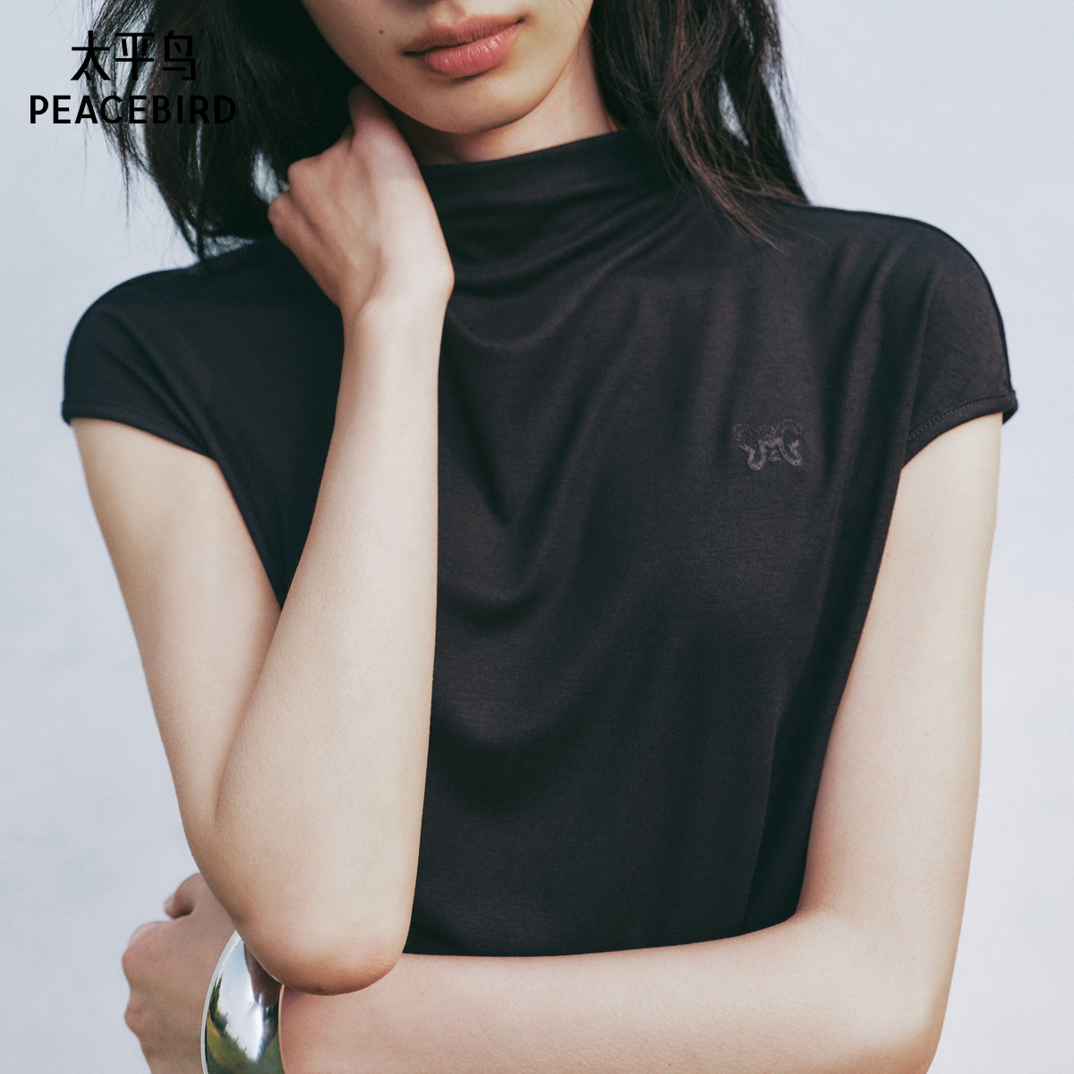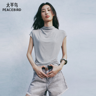 新款 张风野联名 T恤25夏季 半高领醋酸短袖 通勤上衣多色 太平鸟无袖
