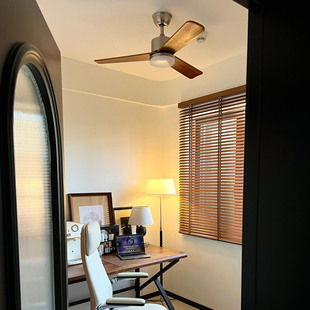 南洋中古实木风扇吊灯侘寂风客厅餐厅卧室书房复古家用变频吊扇灯