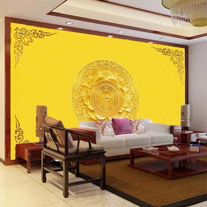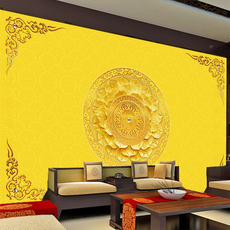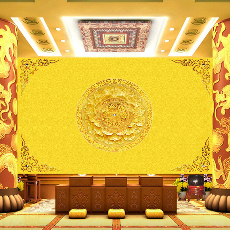 中式 饰吊顶壁画 花纹图案佛堂背景墙纸圆圈祥云立体莲花瓣天花板装