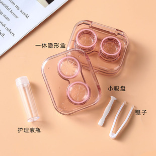 免拧盖隐形眼镜盒高级感一体式 便携多副收纳护理伴侣双联美瞳盒子