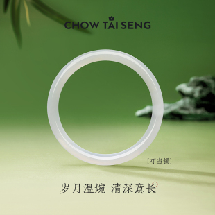 周大生白月光玉髓手镯女款 荔枝冻叮当镯国风平安镯生日礼物送女友