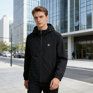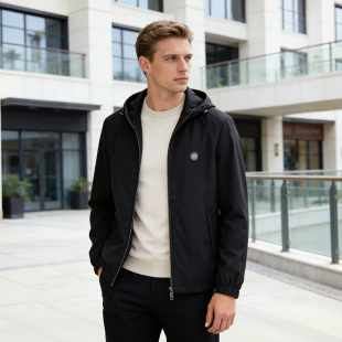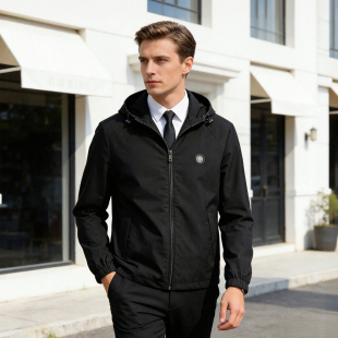 男士 高奢货 春季 真皮包边 商务休闲连帽夹克外套D2695 丝缎质感