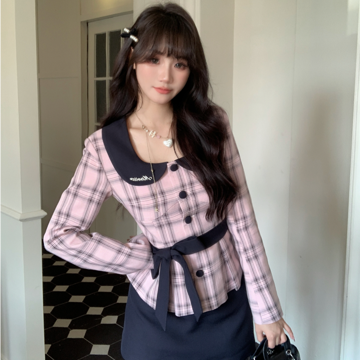 复古套装 法式 女2025秋格子外套半身短裙两件套 私立校花 越韩小鱼