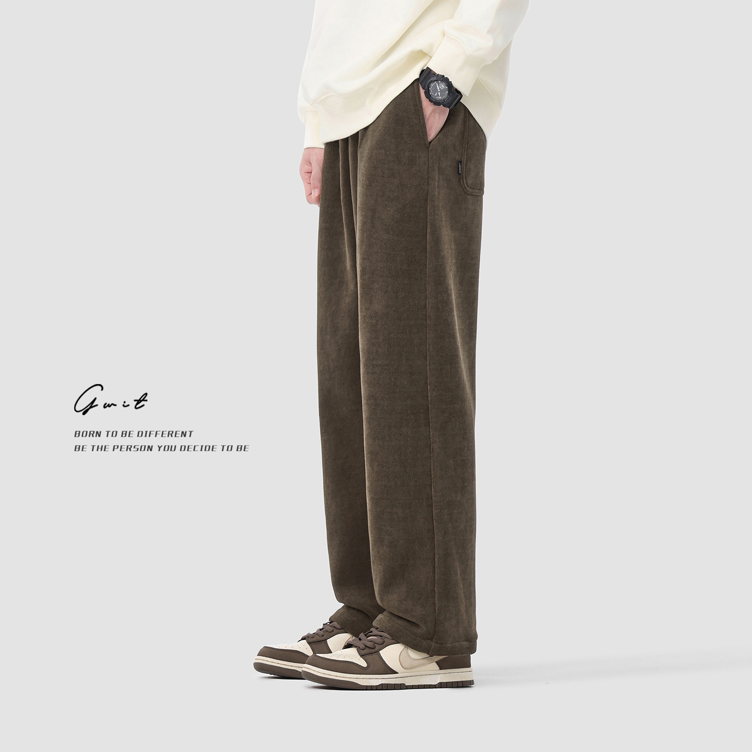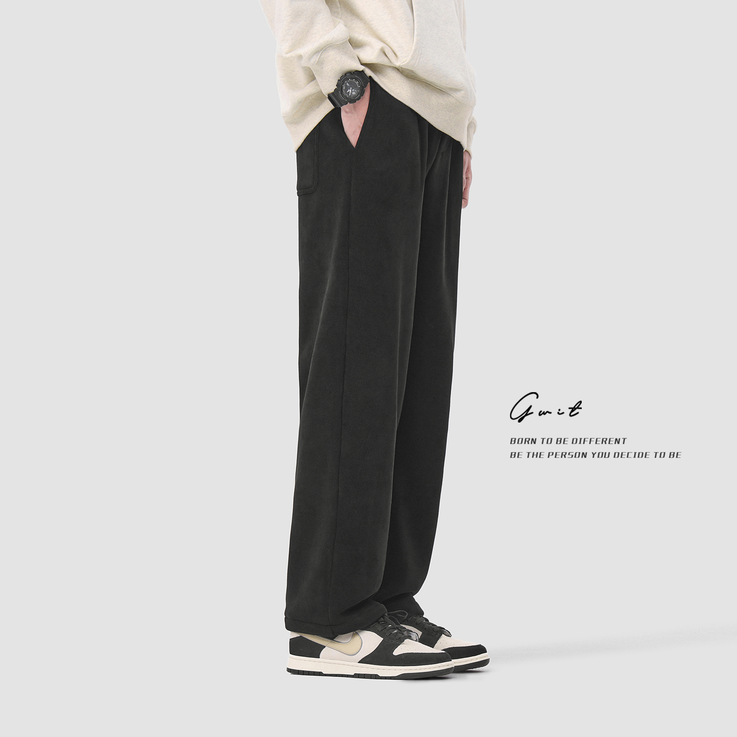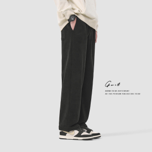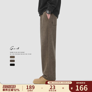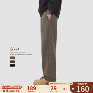 潮牌直筒保暖阔腿垂感加绒加厚休闲裤 重磅奥粒绒美式 男 冬季 GWIT