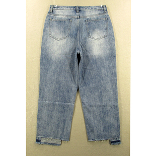 68281 牛仔裤 E102 抓绒加厚高腰宽松阔腿直筒九分裤 女秋冬款