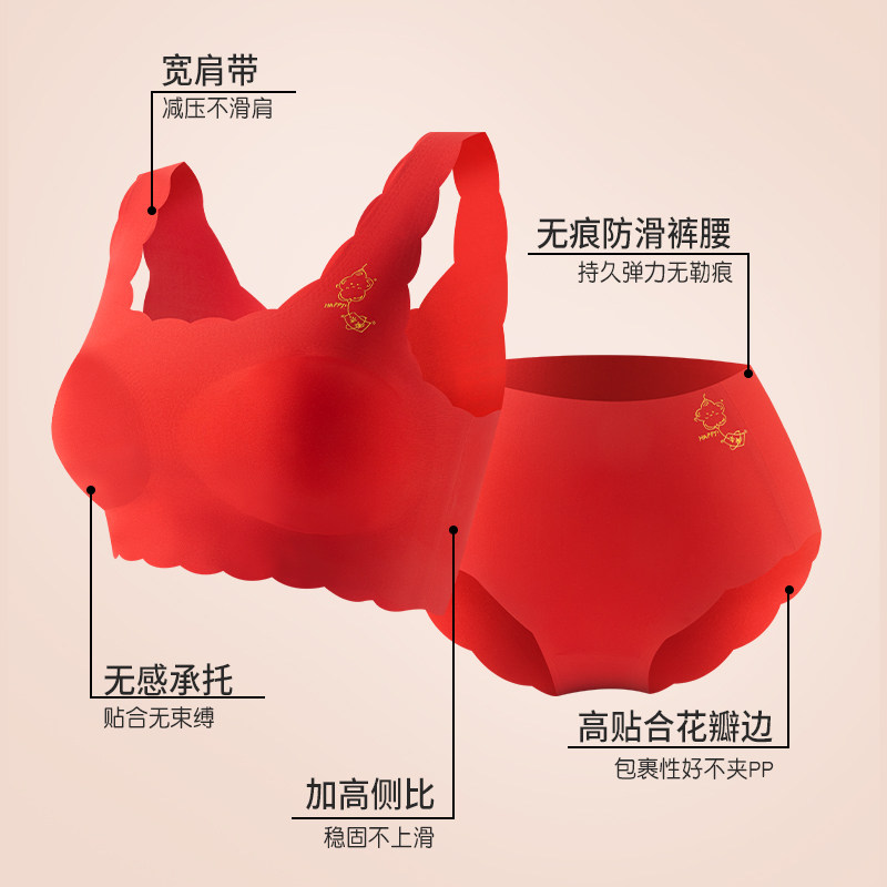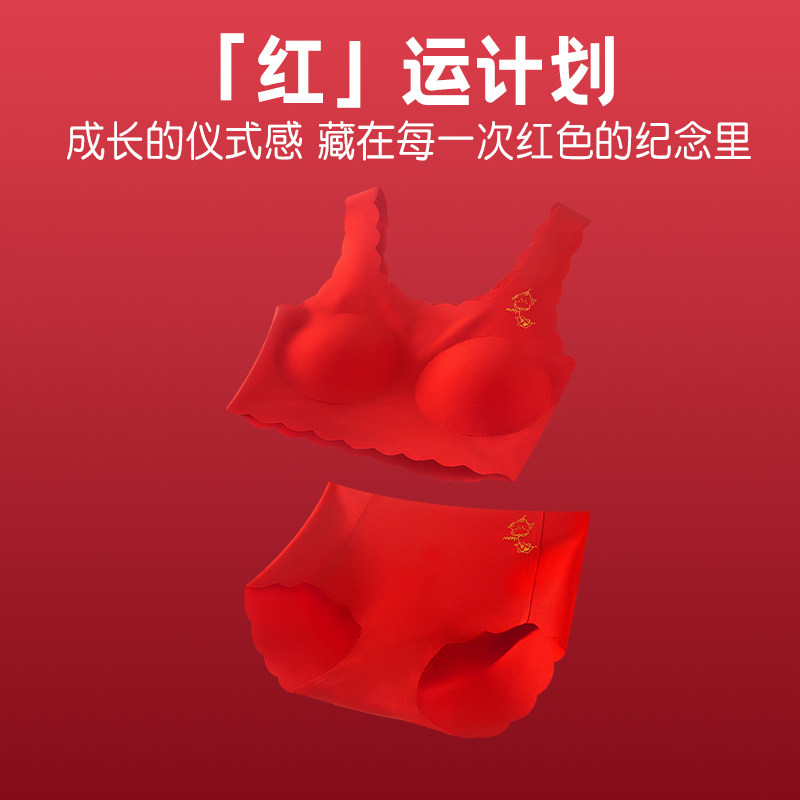 likeuu女童本命年内衣套装 红色新年礼物少女文胸青少年儿童内裤