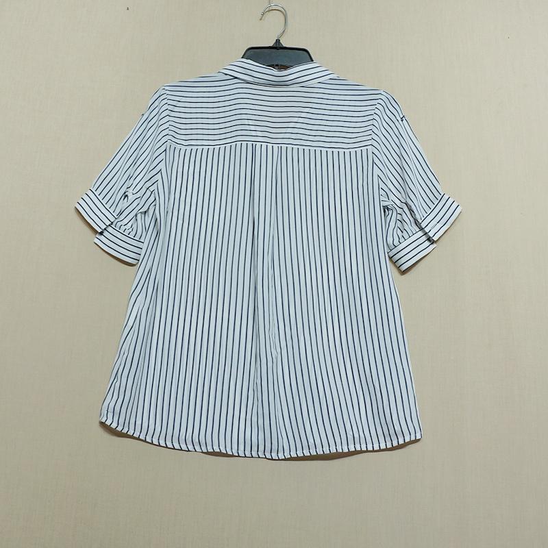 女宽松显瘦上衣女衬衣夏季 外贸原单女装 衬衫 休闲百搭条纹短袖 时尚