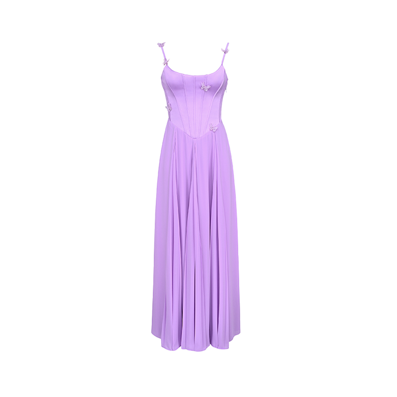 House CB高贵轻盈兰花紫蝴蝶紧身超长连衣裙Pascha