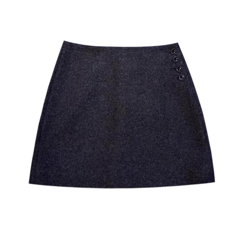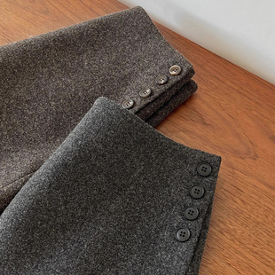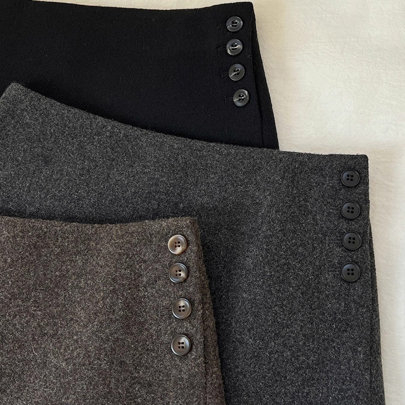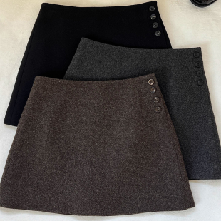 灰色毛呢半身裙女2025秋冬新款 黑色高腰百搭羊毛小个子a字短裙子