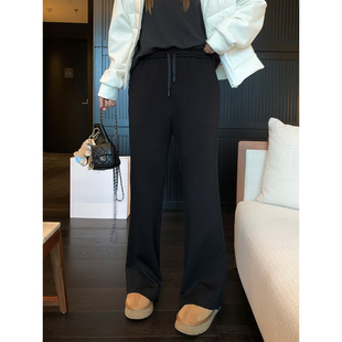 冬季 加绒裤 新款 胖mm直筒时尚 黑色显瘦高腰微喇休闲裤 NAZ那子大码
