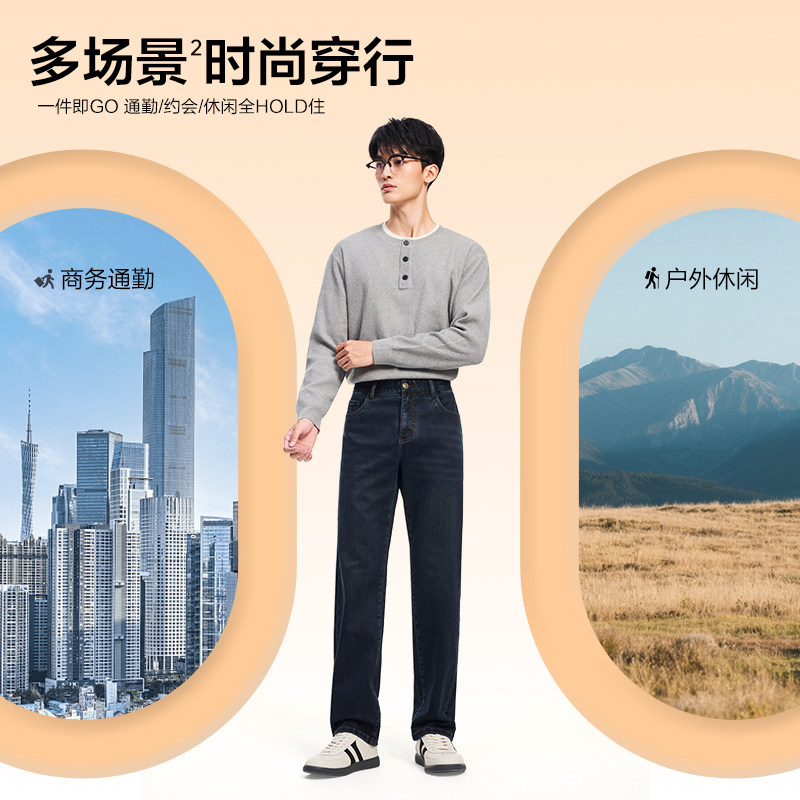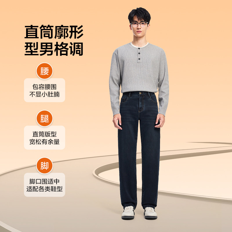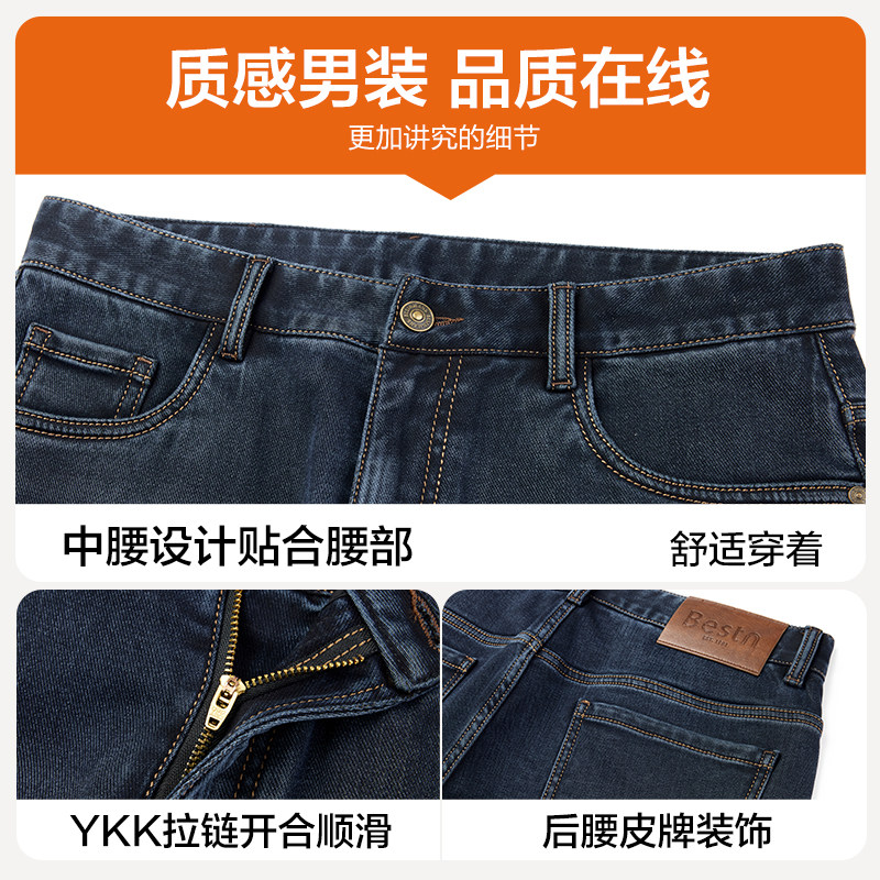 牛仔裤 百斯盾男士 冬新款 蓄热一体绒厚款 子 中直筒裤 保暖加绒裤