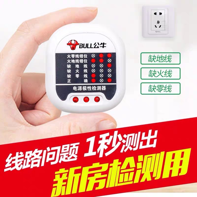 公牛电源极性检测器插座线路验电器 零地线测试插头极性相位仪器