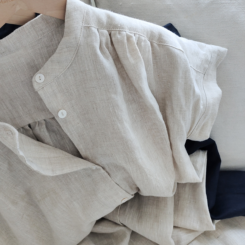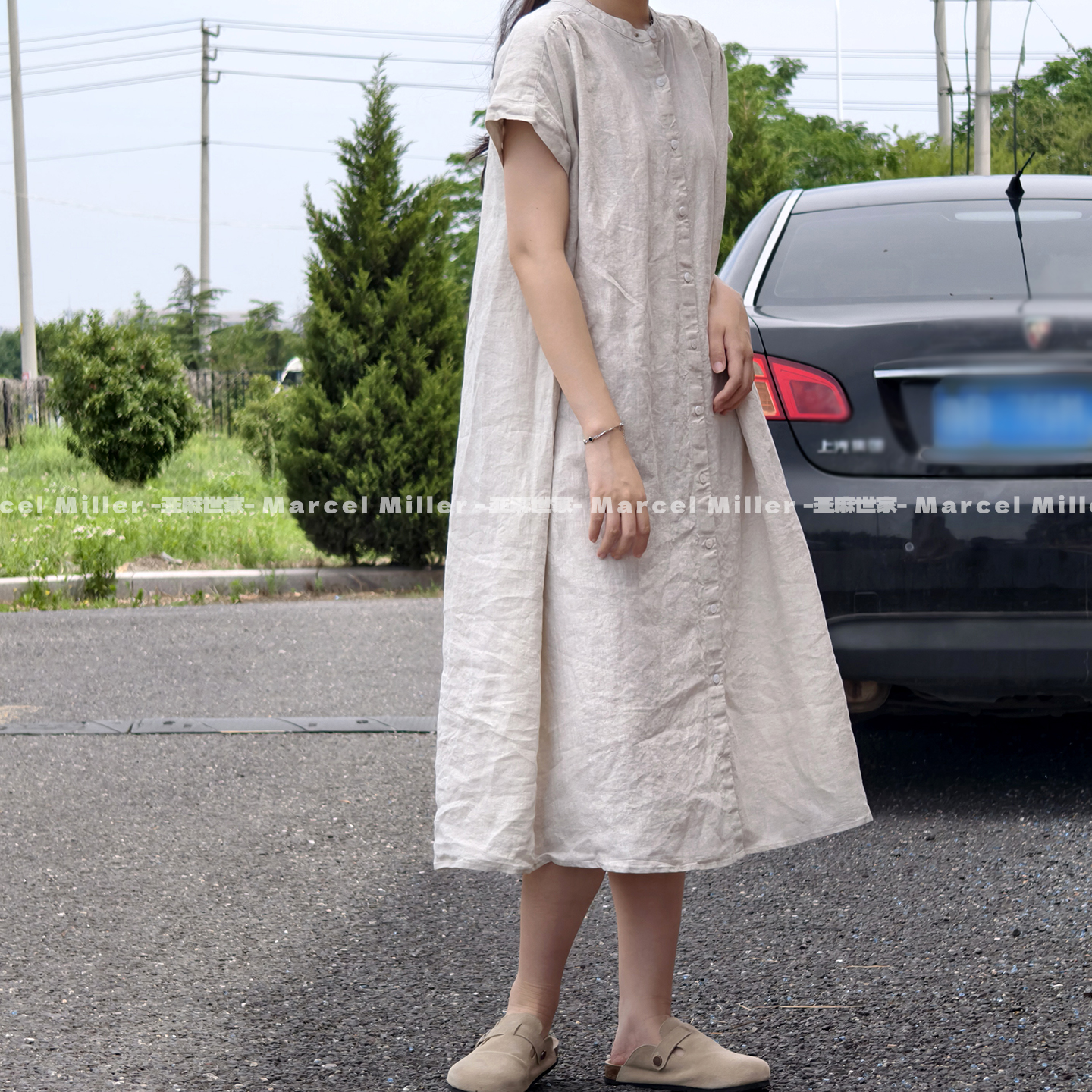 遮肚子过膝长裙 连衣裙文艺宽松简约显瘦大码 纸片ren 汉麻立领短袖