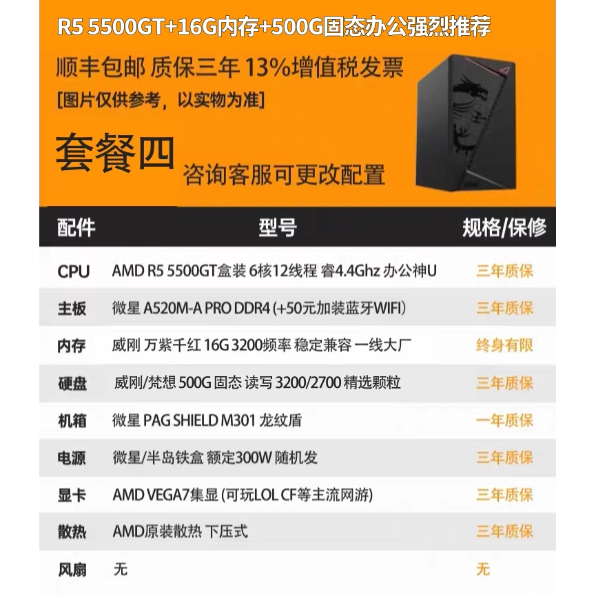 5500GT办公炒股设计CAD电脑台式 5600GT 主机英特尔 AMD 硬件动力