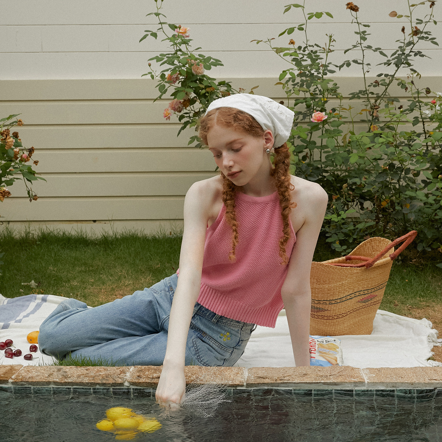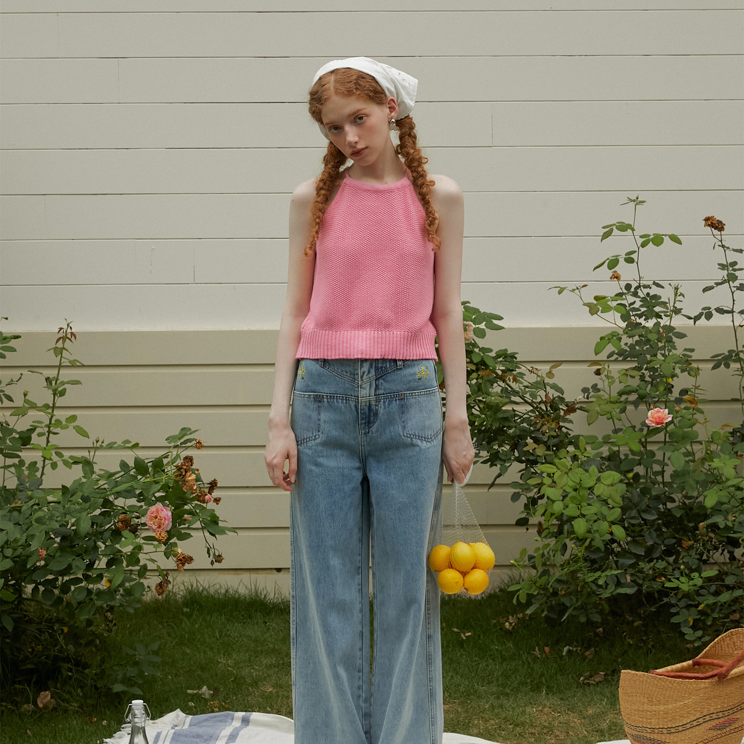 LLANO镂空削肩针织背心复古法式 吊带甜美小心机上衣内搭外穿女夏