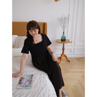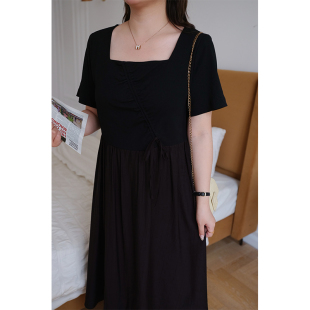 显瘦长款 赫本风气质小黑裙胖mm夏装 连衣裙 女装 蓝若水大码