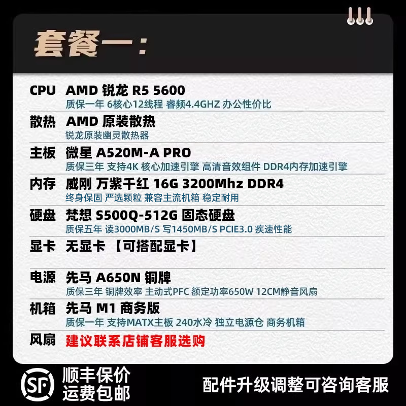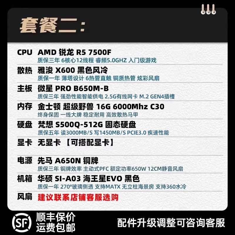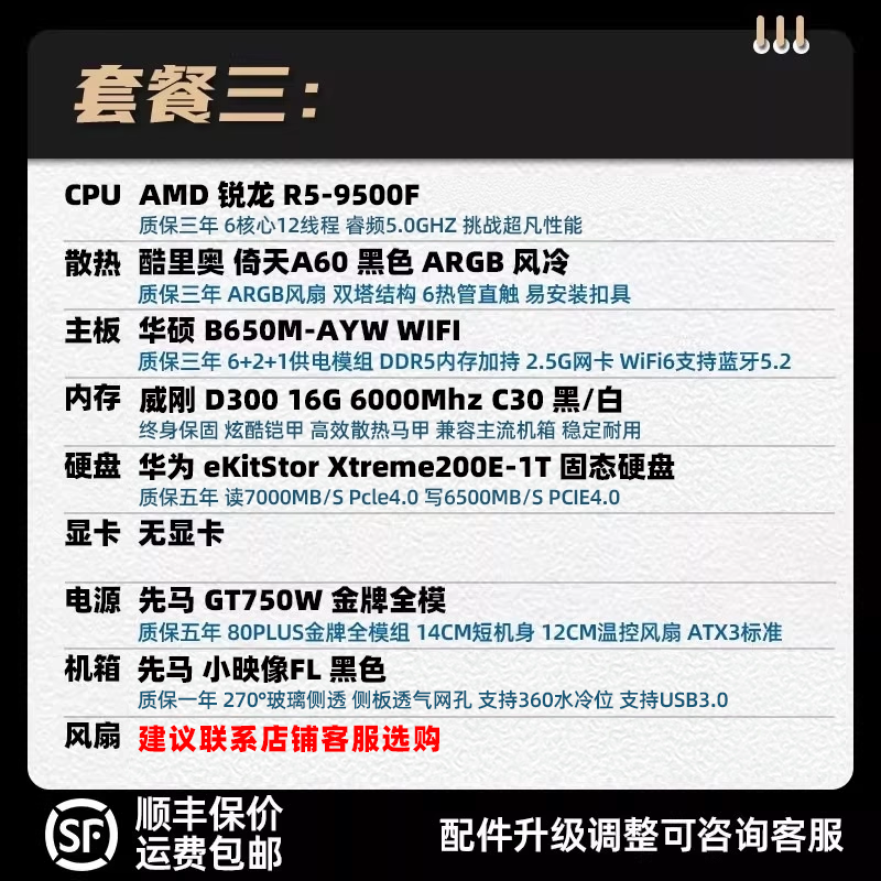 AMD 5600 9500F 主机 装 7800X3D无显卡电脑游戏台式 机猿玩家店