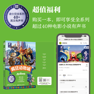 小学生三四五六年级初高中生适合看 赠英文音频 迪士尼彩虹书大电影双语阅读全彩升级版 中英双语阅读小说儿童读物 疯狂动物城1