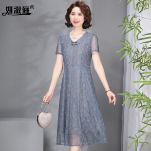 裙子 遮肚时尚 中老漂亮妈妈夏装 高档连衣裙女洋气台湾网纱2025新款