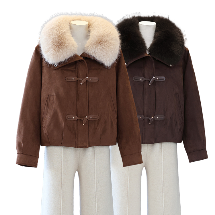 黑色休闲百搭连帽夹克上衣 胖mm双面穿毛绒棉服外套女冬季 大码 女装