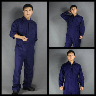 汽修车白红蓝色耐磨结实透气全棉工作服装 纯棉帆布连体潮男款 夏季