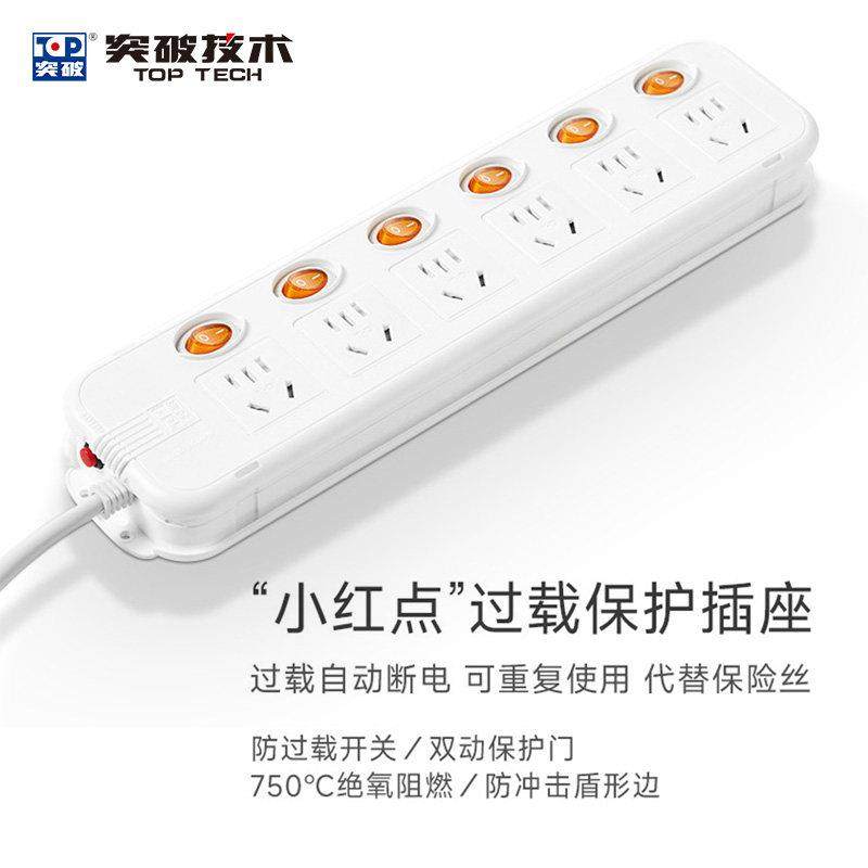 公牛插座延长线五孔缝隙插头接线板拖线板家用冰箱风扇