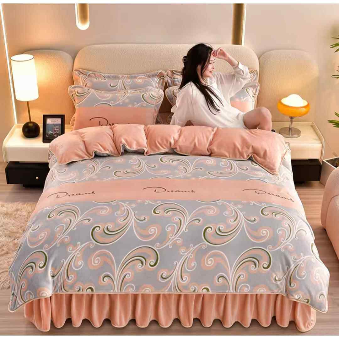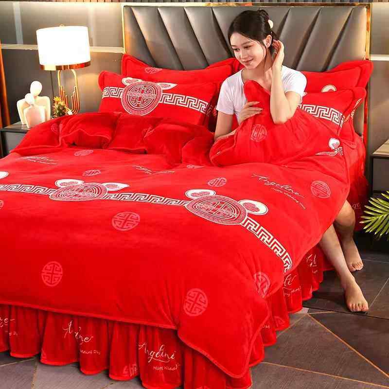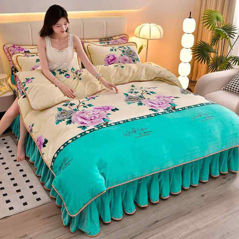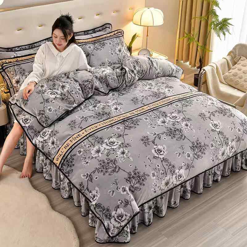 正品 冬双面珊瑚绒四件套裙加厚法单兰床绒床被套金貂牛奶绒床上 季