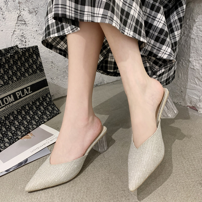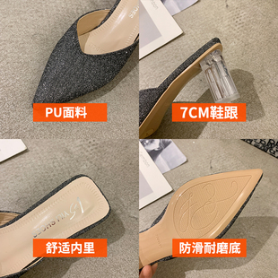 外穿10cm 名媛气质性感尖头细跟包头半拖鞋 毛毛高跟拖鞋 2024秋新款