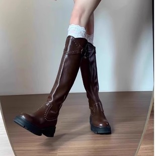 复古黑色游牧靴长筒靴 2025新款 徐若晗吴昕同款 natursun骑士靴女款