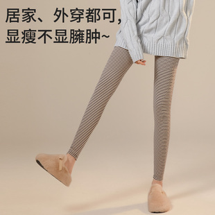 完美记忆灰色打底裤 袜 女秋冬外穿黑色竖纹压力显瘦加厚绒保暖连裤
