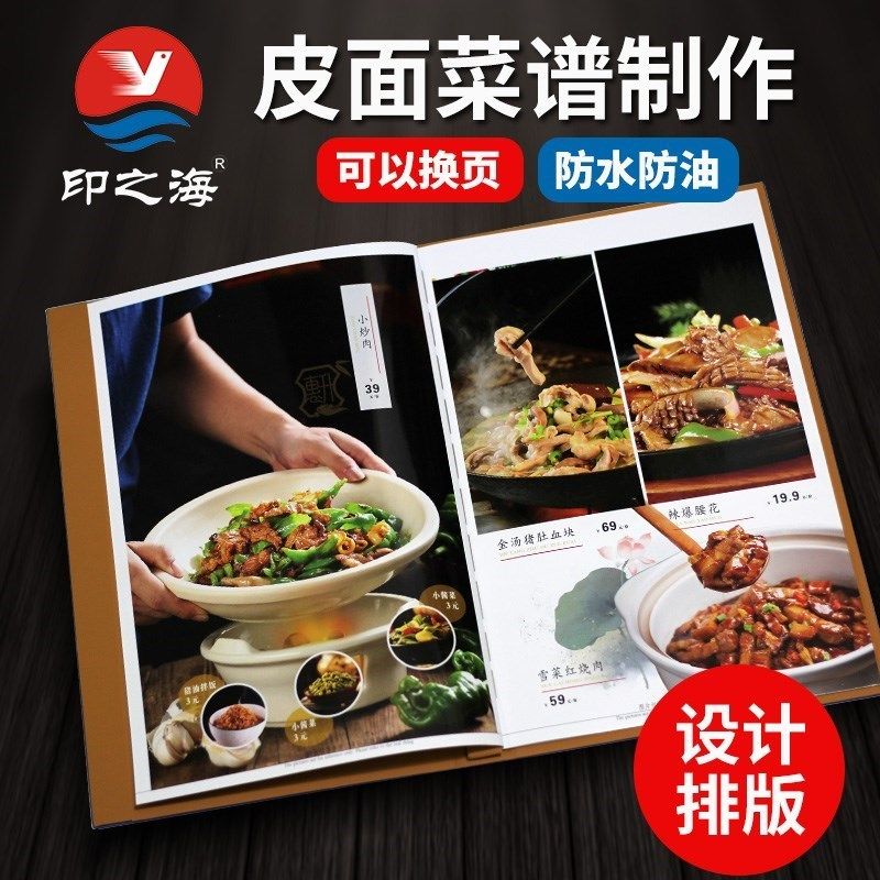 皮面菜单设计制作餐厅菜单本印刷定制定做L活页菜谱菜牌折页价目