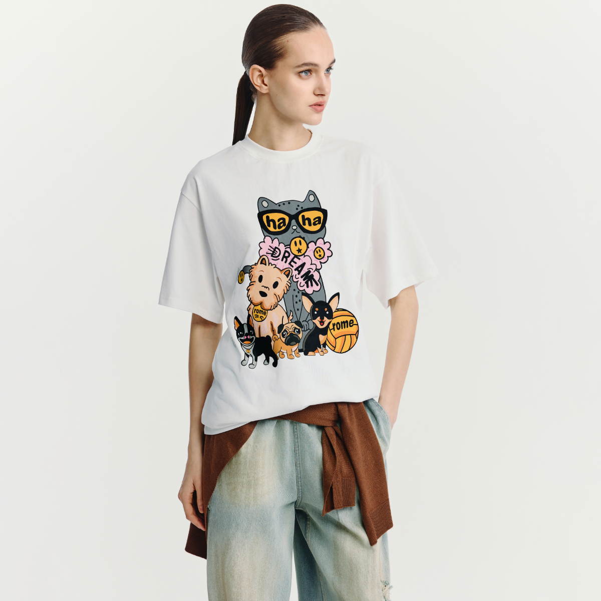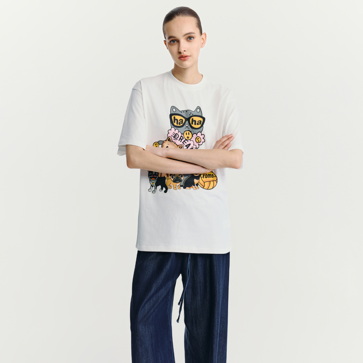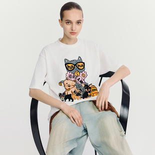HAVVA短袖 上衣ins风设计感小众2025夏季 印花半袖 1522 t恤短款
