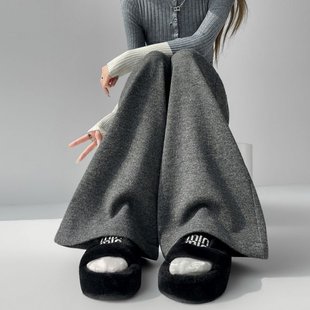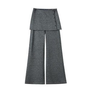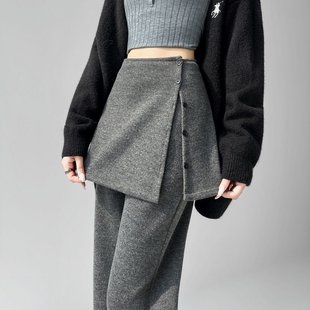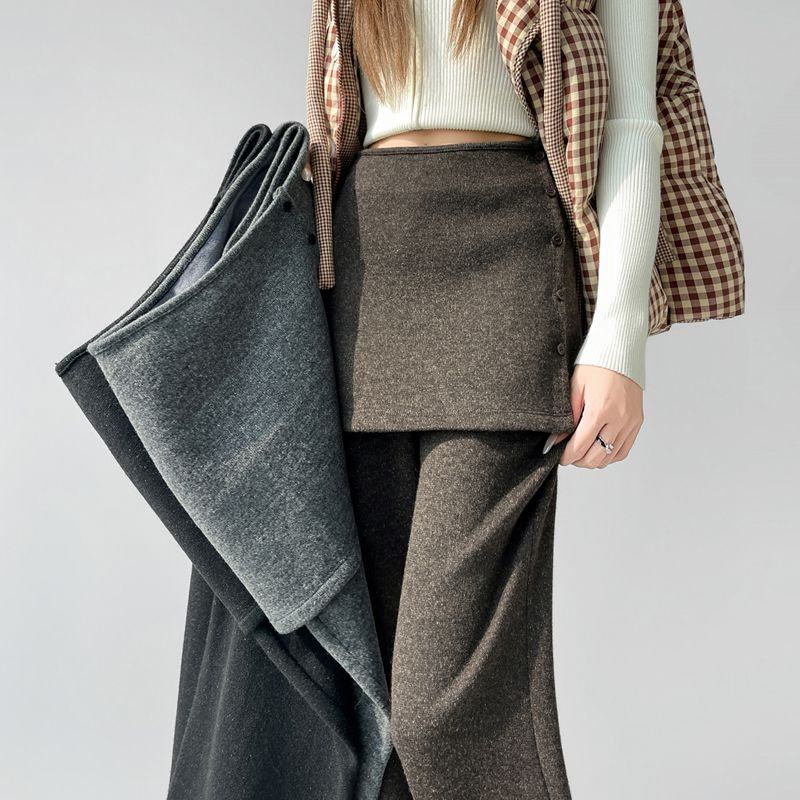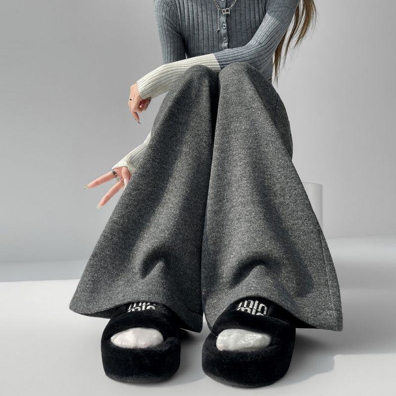 羊绒微喇裤 2025秋冬新款 阔腿拖地裤 百搭加绒休闲两件套裙裤 女 时尚