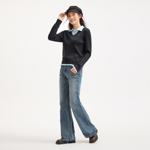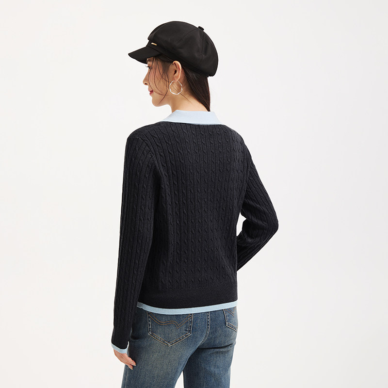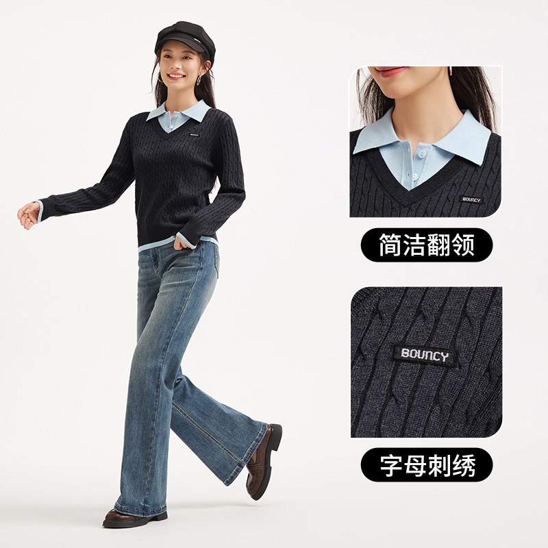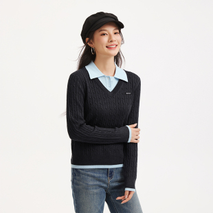 假两件翻领复古绞花打底衫 新款 2026年春季 热风女士老钱风针织衫