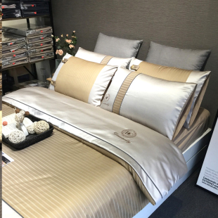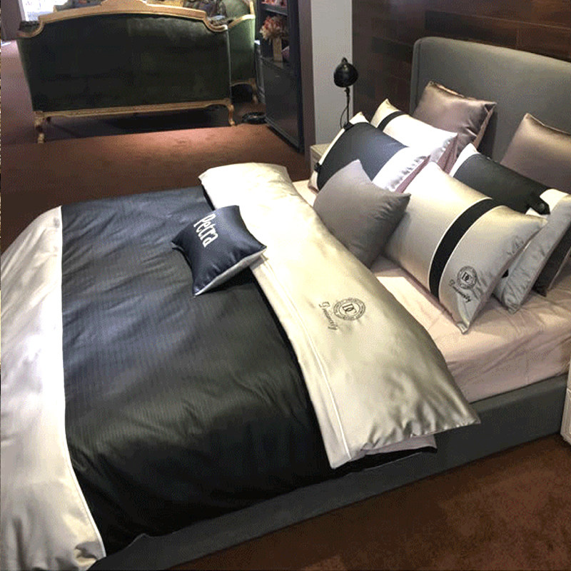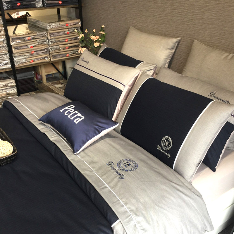 蓝色银灰色男士 高级灰奢华四件套全棉酒店高档床上用品4件套2米