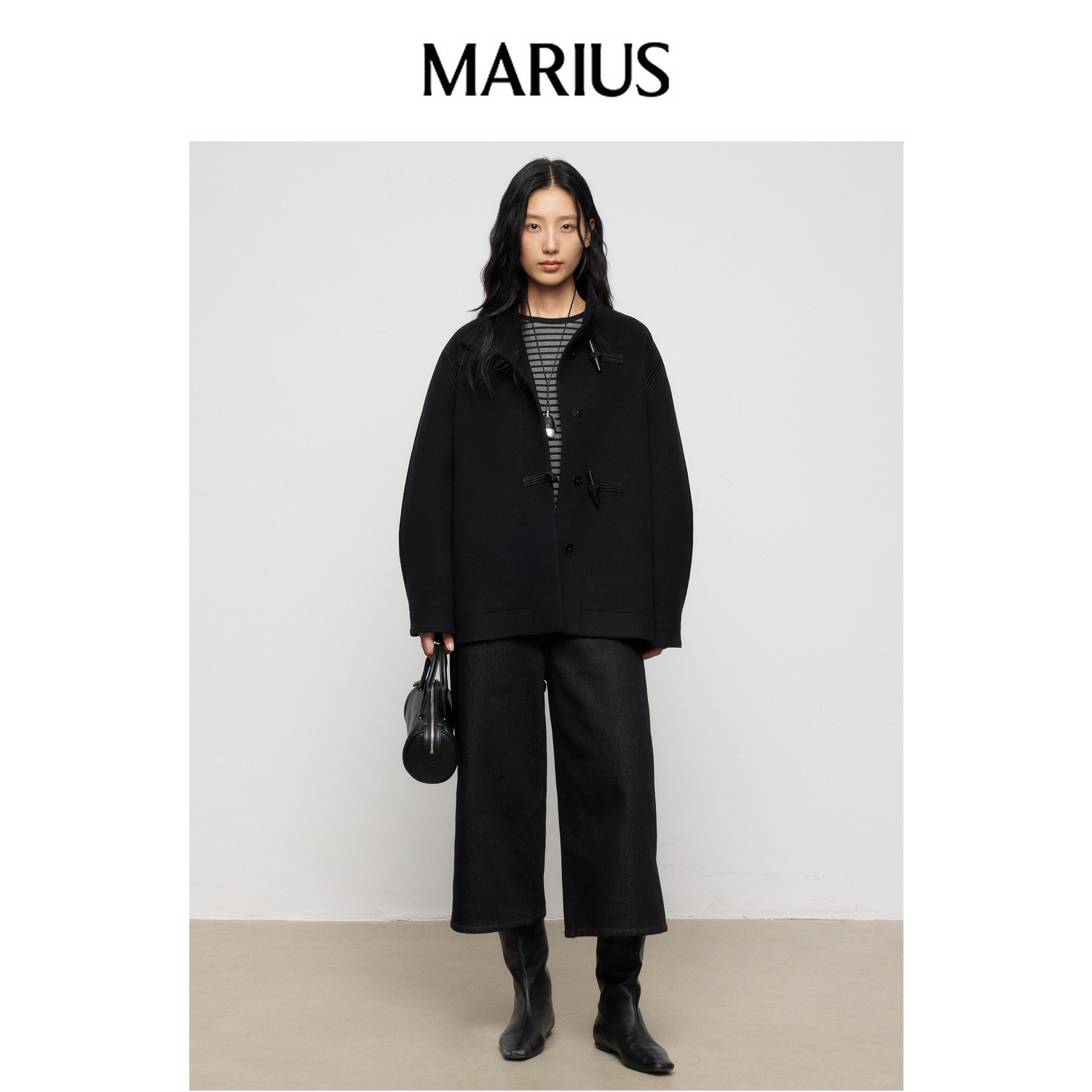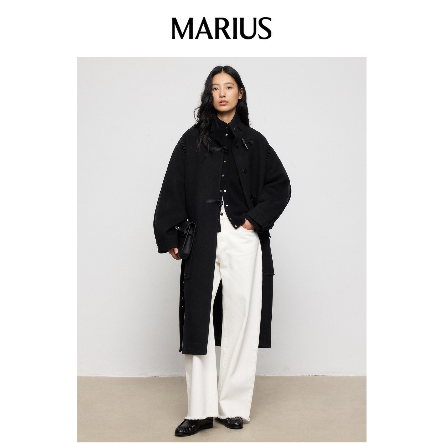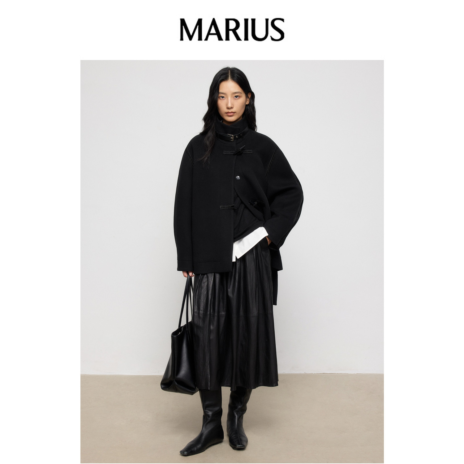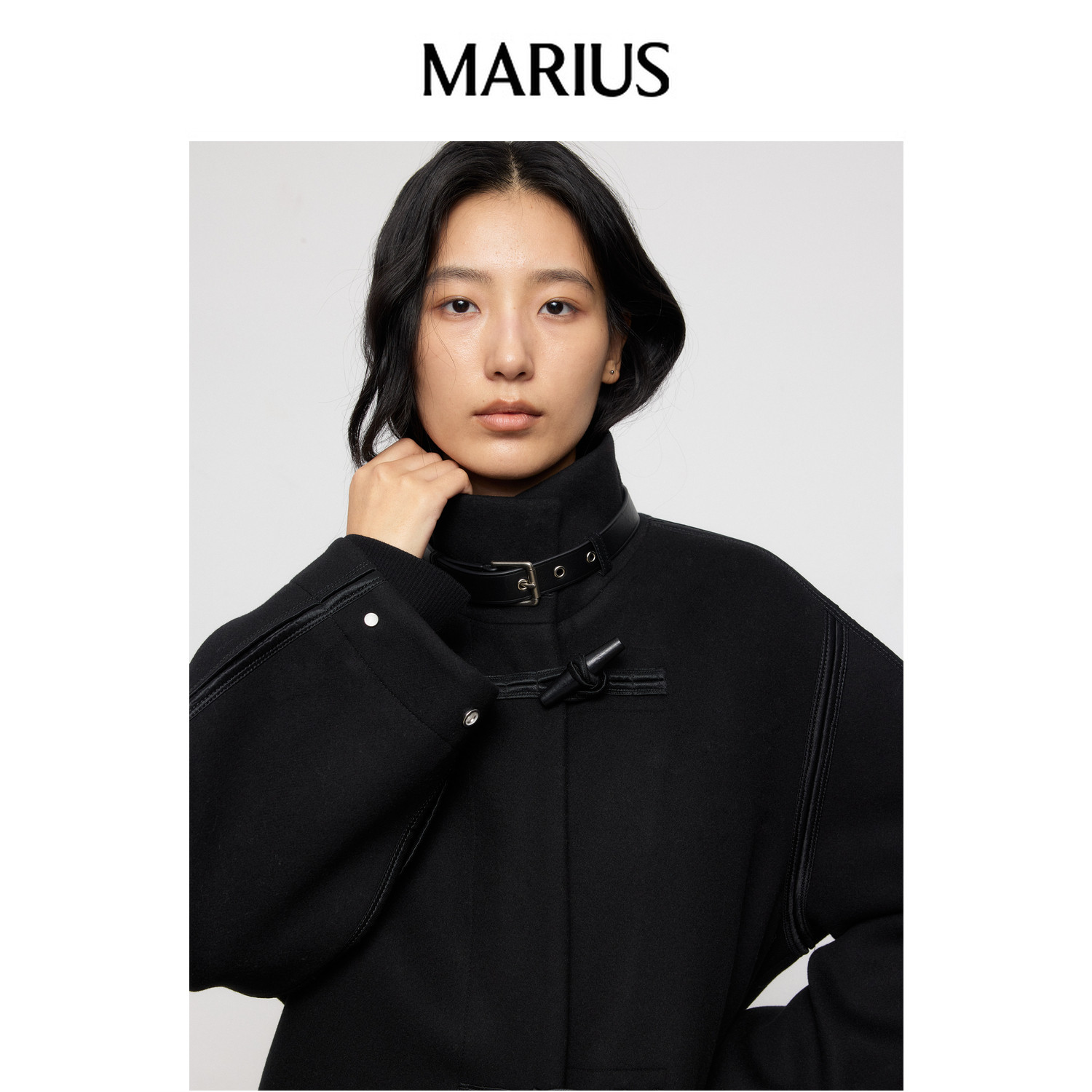 MARIUS 松果黑巧美利奴羊毛双面呢皮带小立领外套 Emate通勤系列