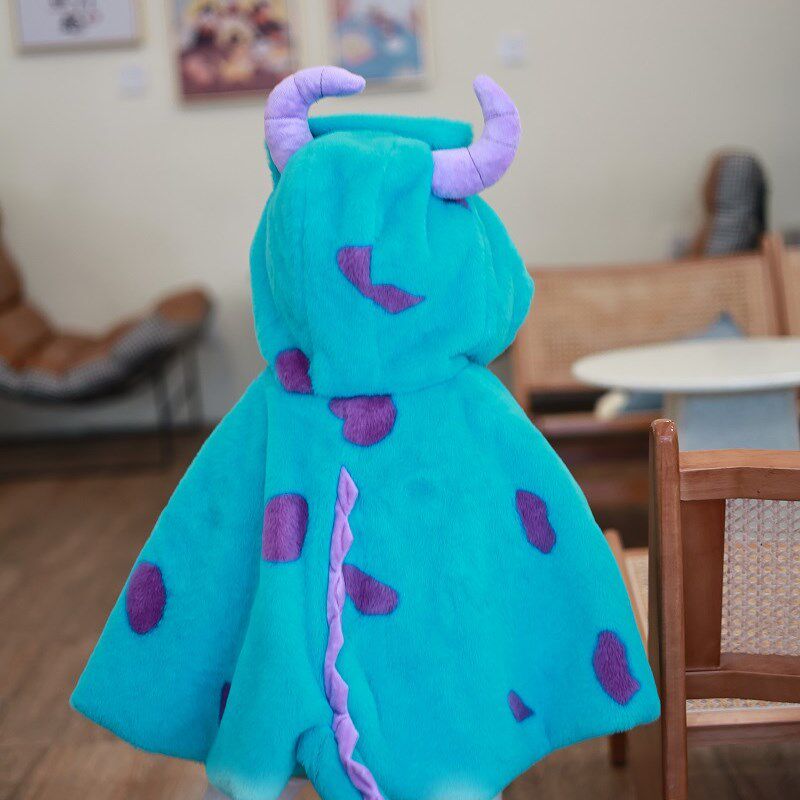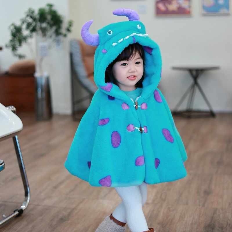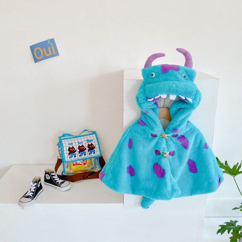 婴儿披风斗篷加厚秋冬款 儿童男女宝宝小恐龙卡通披肩外出保暖外套