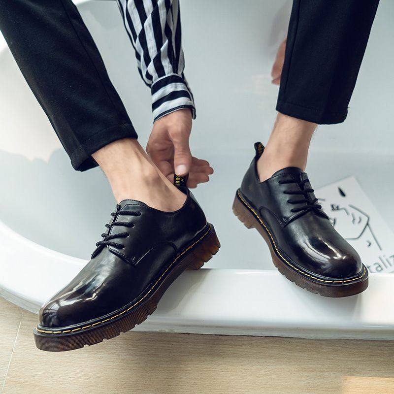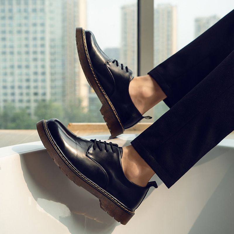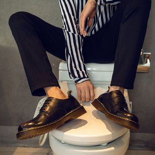 学生青少年英伦港风复古潮鞋 春季 潮流百搭休闲男鞋 男韩版 黑色皮鞋